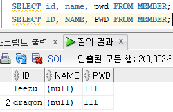 SELECT id, name, pwd FROM MEMBER;