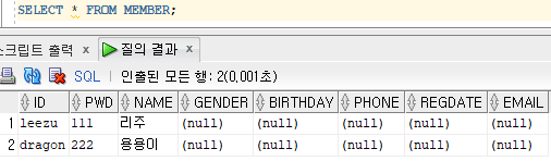 (오라클은 DUAL이라는 더미 테이블을 제공)