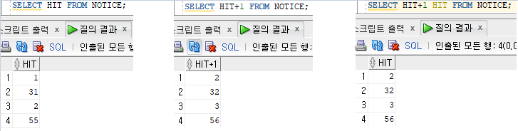 ex) 공지사항의 조회수를 조회하시오. 단 기존 값에 1을 더해서 조회하시오.